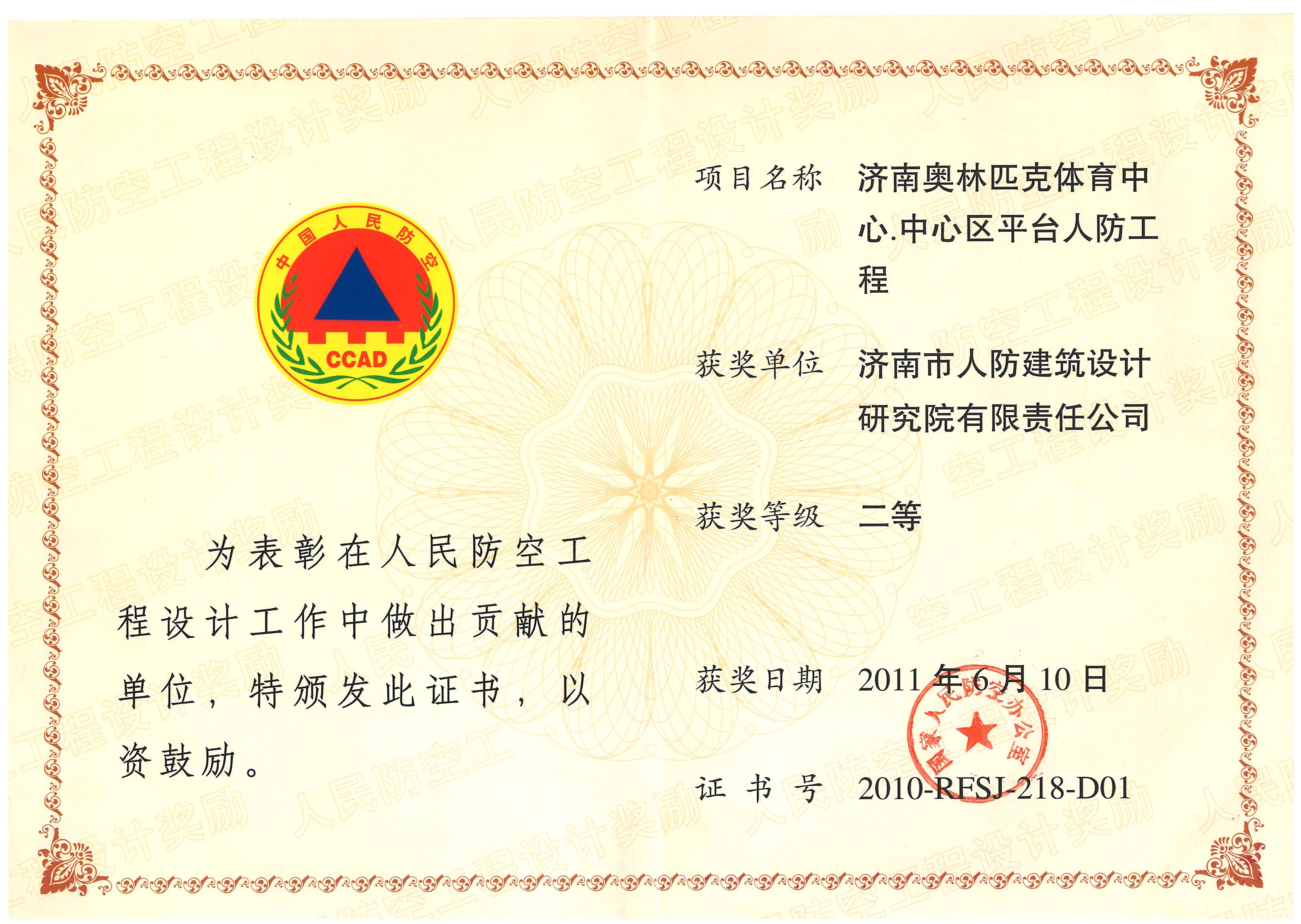 濟南(nán)奧林(lín)匹克體(tǐ)育中心·中心區(α®Ωqū)平台人(rén)防工(gōng)程獲得(de)二等獎
