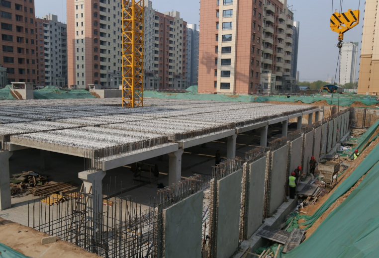 長(cháng)清郦水(shuǐ)嘉苑地(™ εdì)下(xià)車(chē)庫項目裝配式施工(gōng)現(xiàn)場(chǎng)