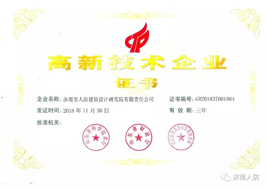 近(jìn)日 ™(rì),山(shān)東(dōng)省科(kē)學技(↕>jì)術(shù)廳、山(shān)東(dōng <♣≥)省财政廳、山(shān)東(dōng)省稅務局發布2018™♠π年(nián)度高(gāo)新技(jì)術(λ→Ω≥shù)企業(yè)認定通(tōng)知(zhī)Ω×→,哈爾濱市平戰人防工程設計院有限公司名列其中并已收到(dào)“>φו高(gāo)新技(jì)術(shù)企業(yè)”認定證書(s↕"←<hū)。